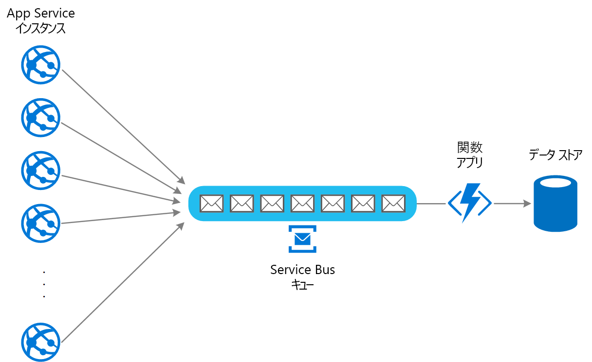 こちらの例は、GateBox社の課金、商品配布の仕組みをAzureのPaaSのみで 作り上げた際のインフラ構成イメージです。 海外展開を踏まえ、Cosmos DB というグローバルで分散処理可能な高速なNOSQLのデータベースを利用しています。